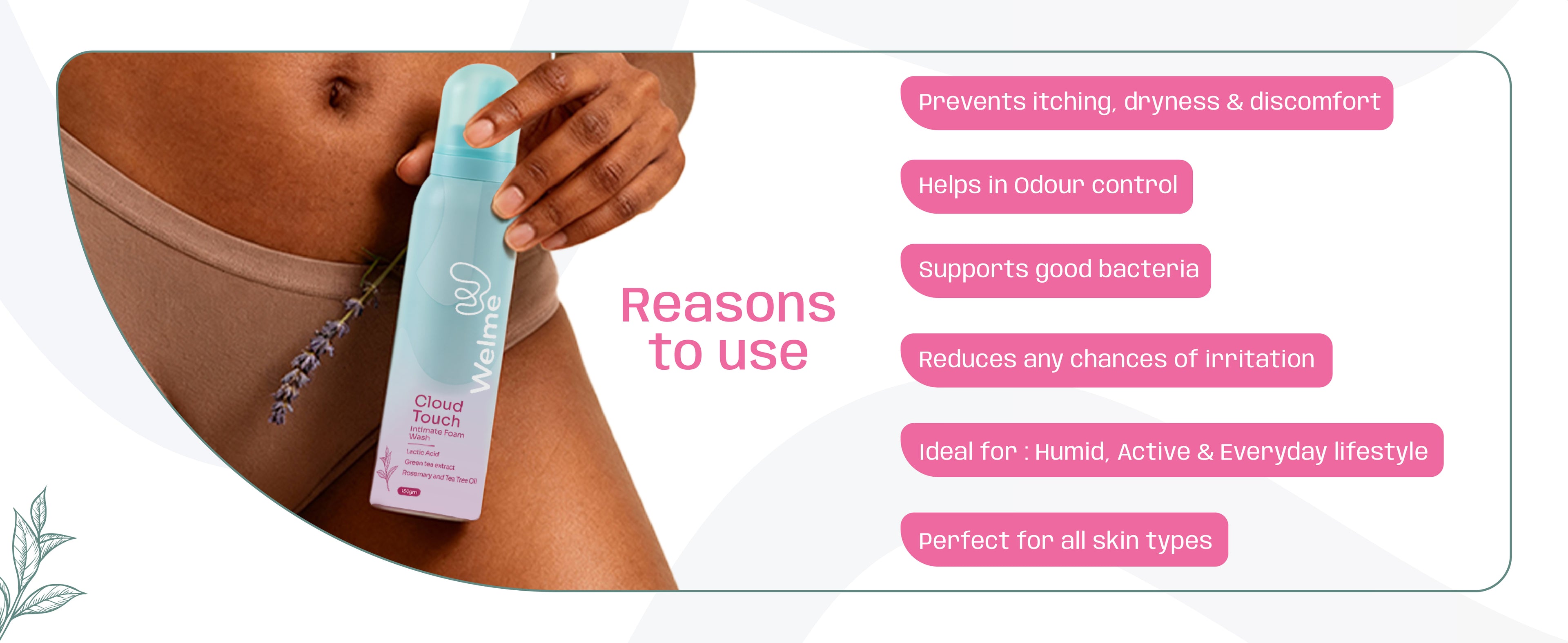 Welme Intimate Wash is crafted with a gentle pH, ensuring it supports the growth of beneficial bacteria, while discouraging harmful microbes.