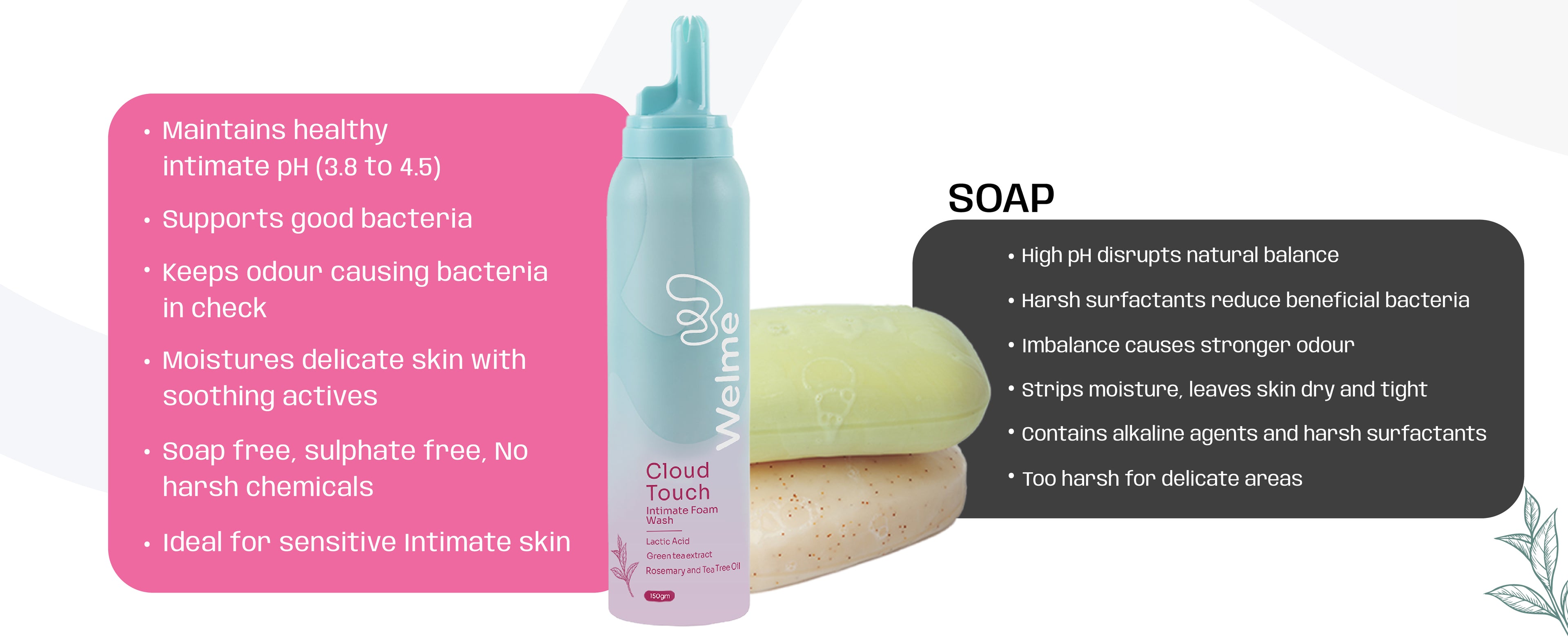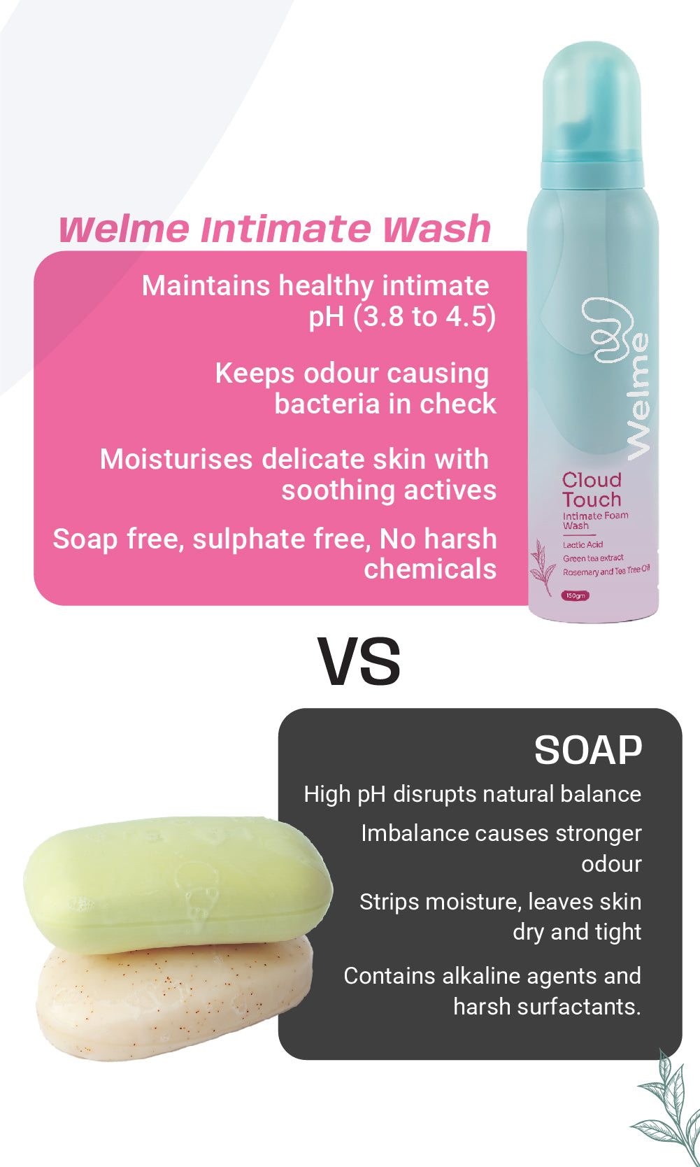 Using regular soaps — which are alkaline and harsh — can disrupt this balance, stripping natural moisture and increasing chances of irritation, itching, odour, and infections.