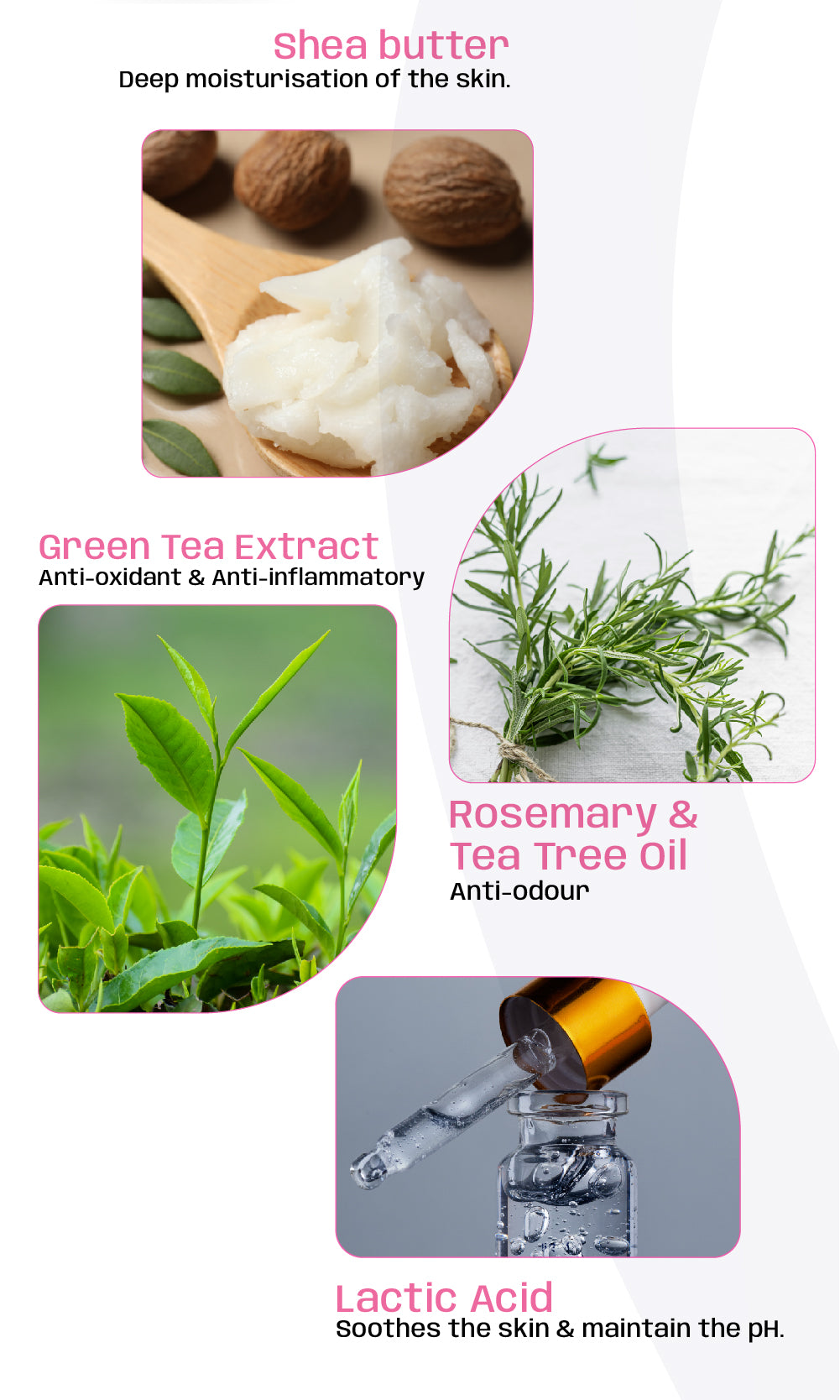It maintains pH balance, prevents odour, and supports healthy microflora for lasting freshness.