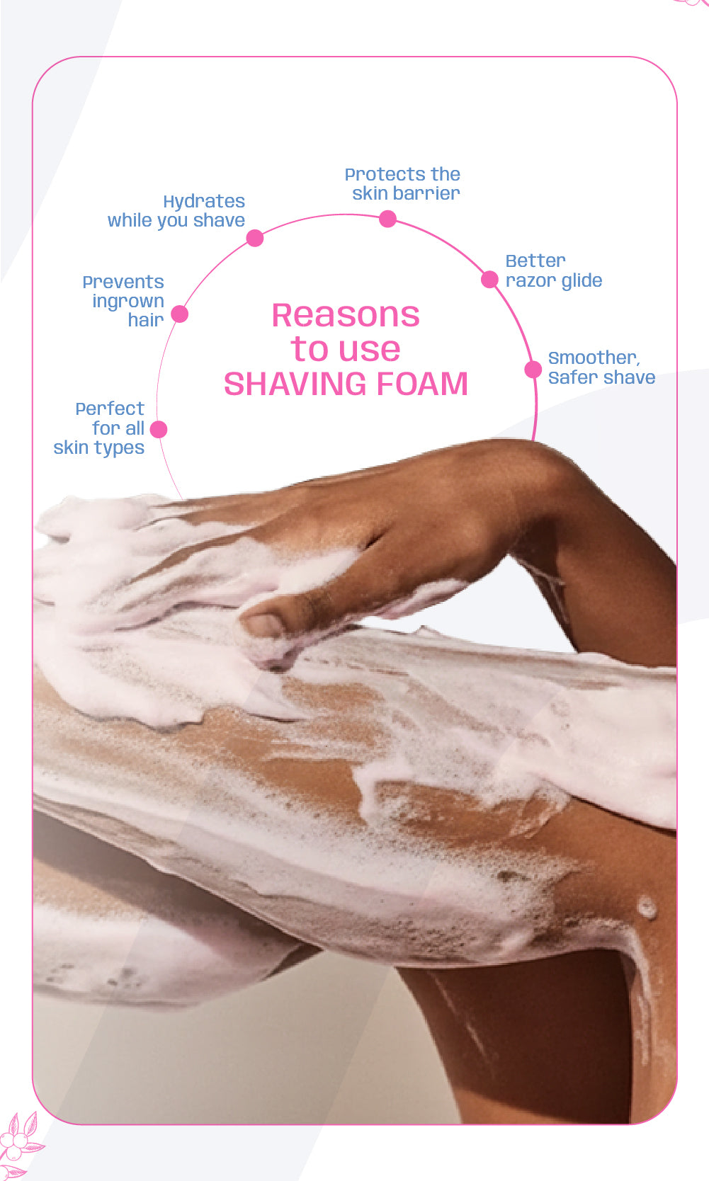 - Reduces redness, bumps & razor burns by calming the skin during and after shaving.