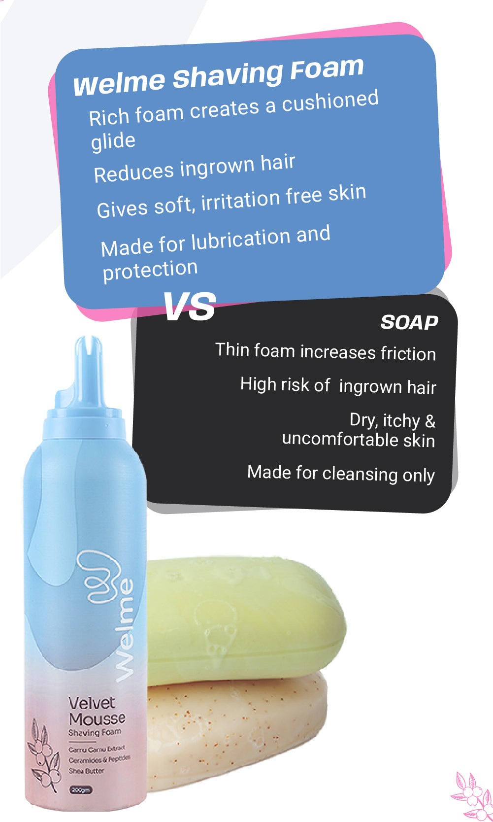 Unlike harsh foams, Welme mousse hydrates and nourishes the skin, leaving it soft, supple, and smooth after every use.