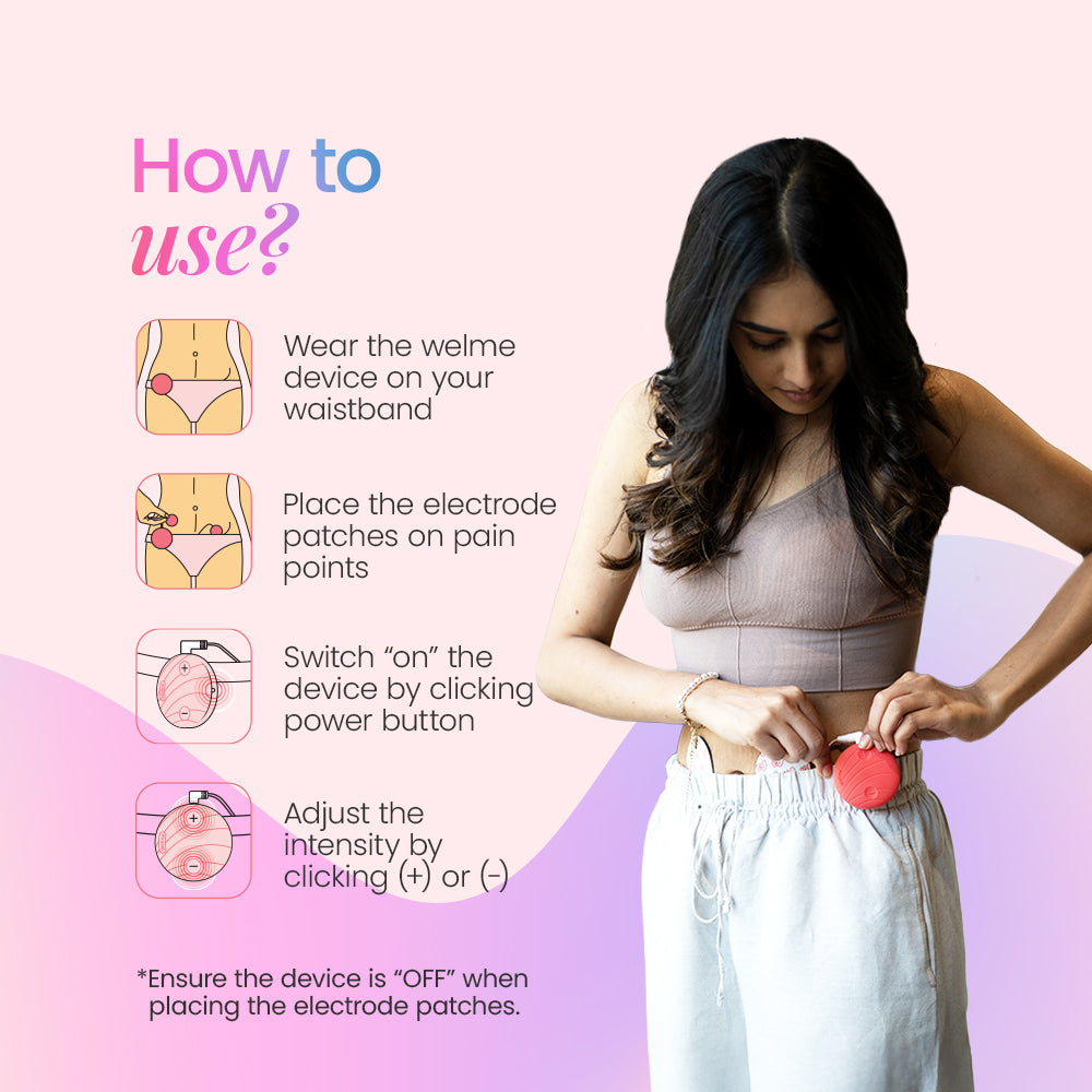 Welme provides a clinically validated and scientifically supported solution for menstrual discomfort. Utilizing TENS therapy, this device offers women of all ages a means to achieve rapid relief from menstrual cramps, back pain, and abdominal pain. This approach minimizes the need for pharmaceutical interventions and harsh chemical treatments, offering a gentle and effective method for pain management.