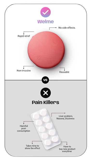 - Welme device is based on TENS therapy, a drug-free and scientifically-tested technology for pain relief.
