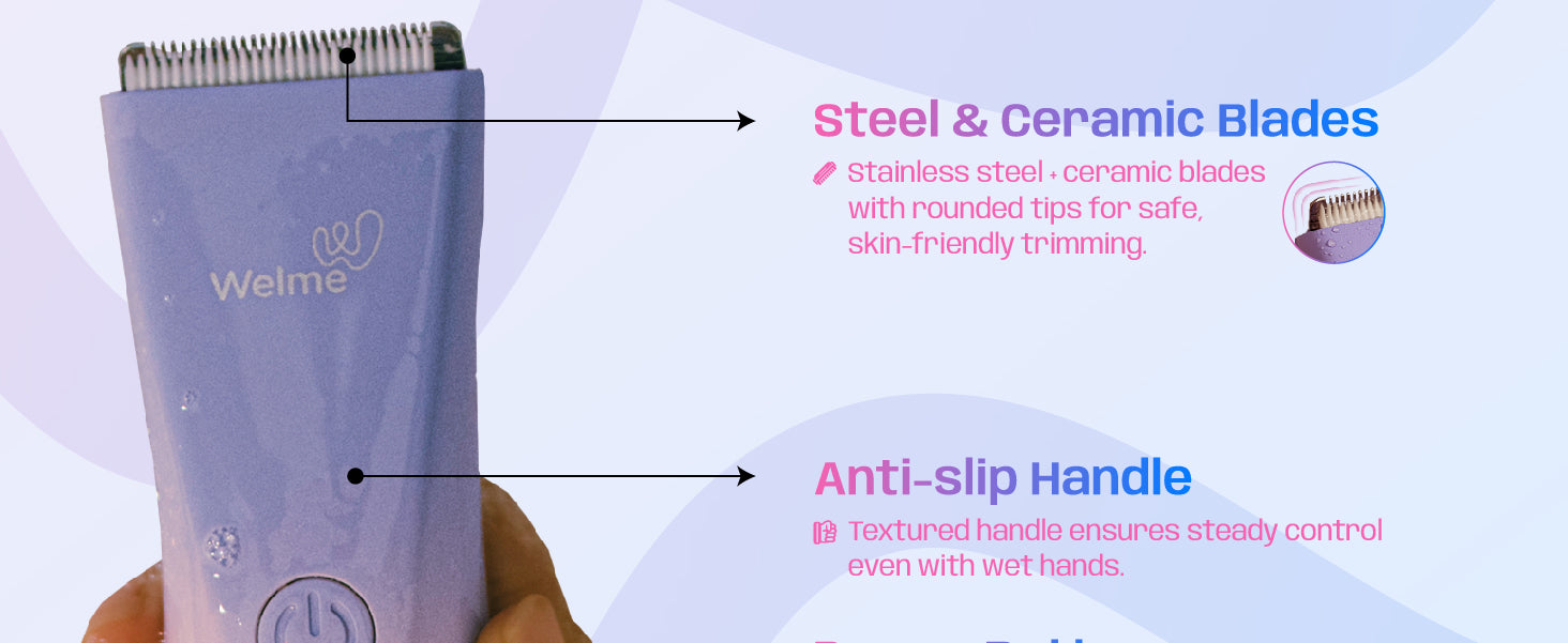 The Welme Body Trimmer is designed to glide gently over delicate skin, giving you a smooth, stress-free trim without nicks, bumps, or irritation. Its compact, waterproof build feels natural in your hand and slips easily into your routine, whether you’re at home, in the shower, or on the move. With USB charging and long-lasting power, it’s always ready when you are. A community favorite, it handles fine, coarse, and curly hair like a pro, no pulling, no discomfort.